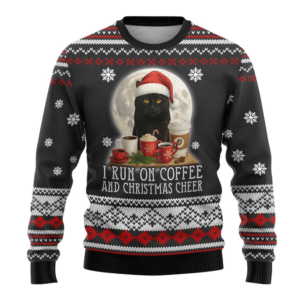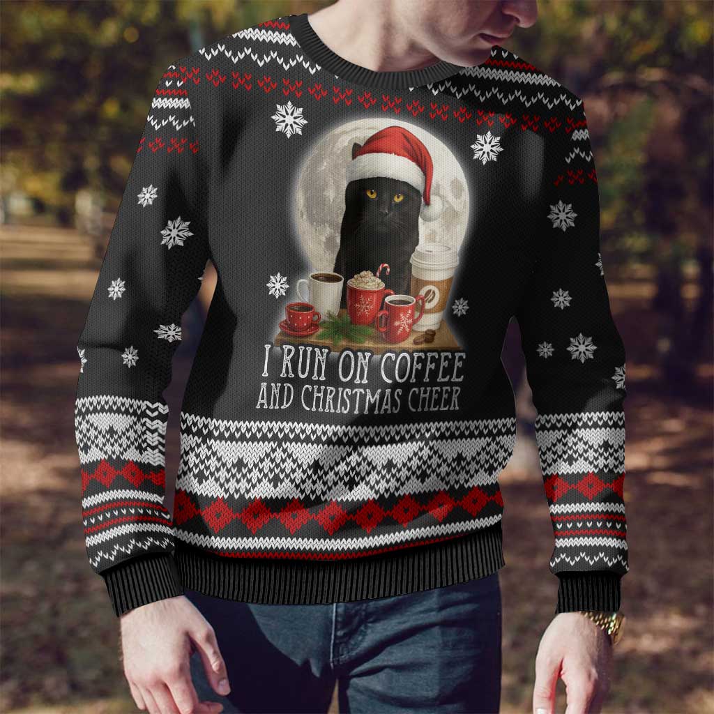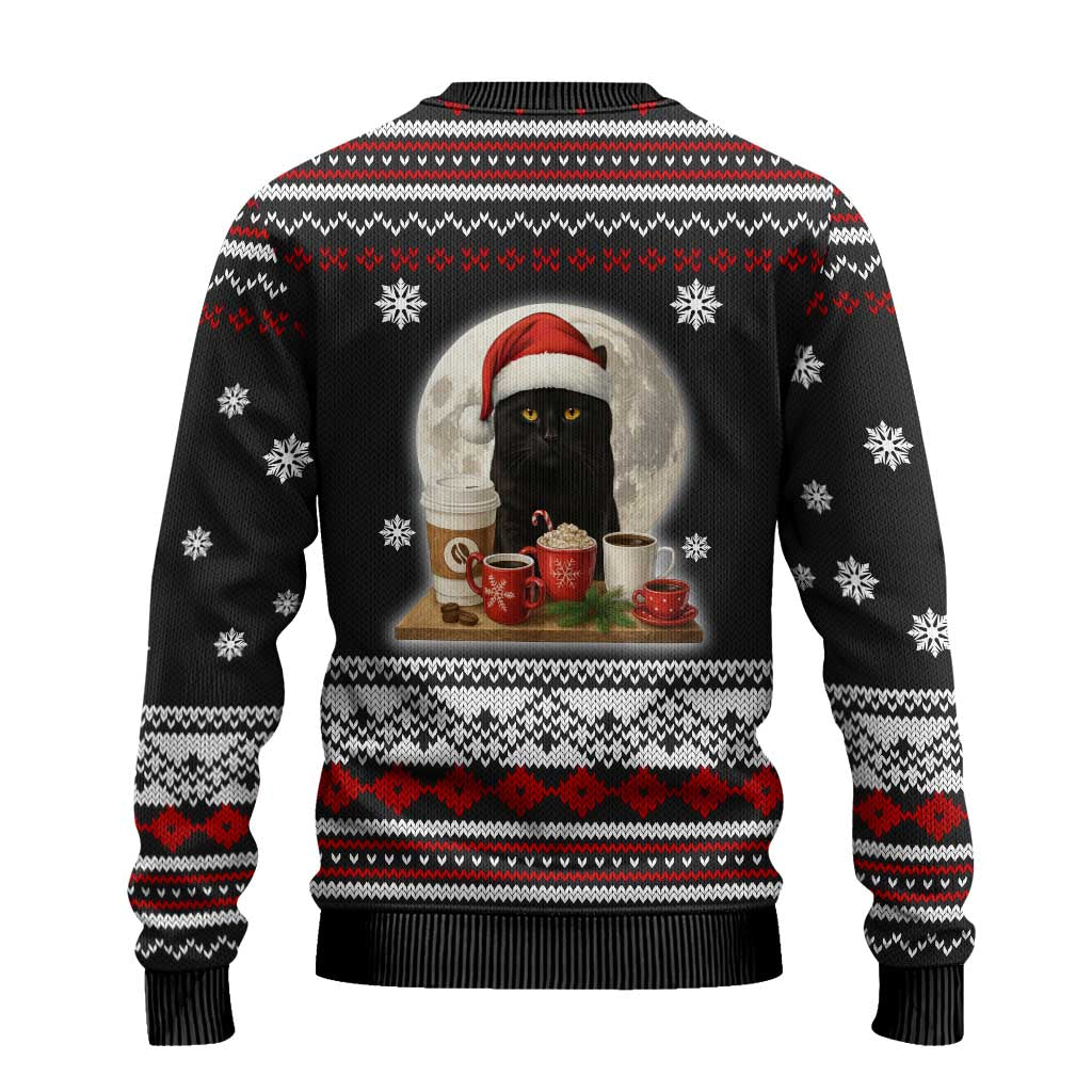 Camisola de Natal Feia com Gato Preto a Correr Sobre Café - Padrões para as Festas de Natal