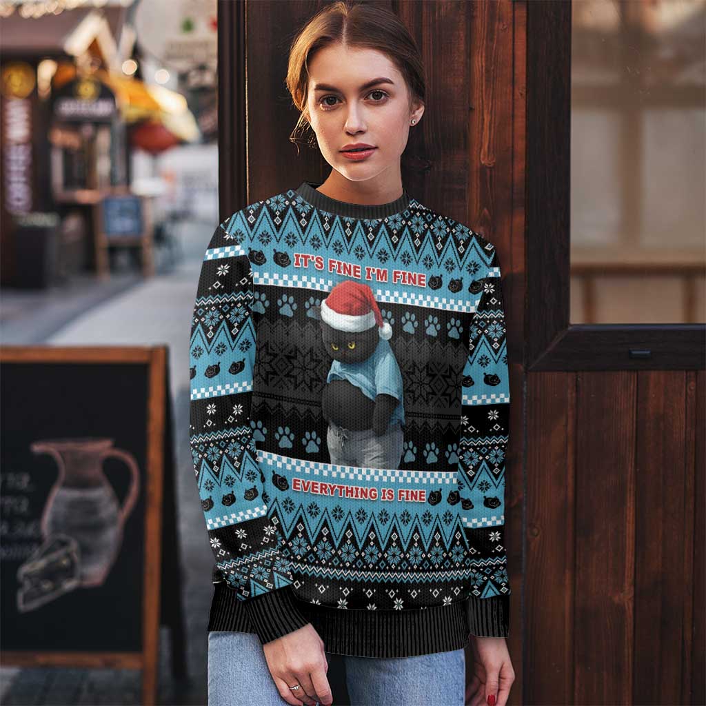 Gato Natalino Camisola de Natal Feio Está tudo bem, estou bem Tudo está bem