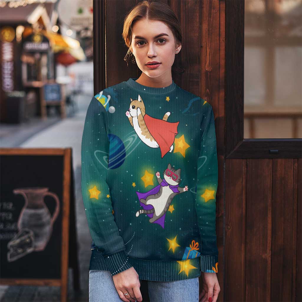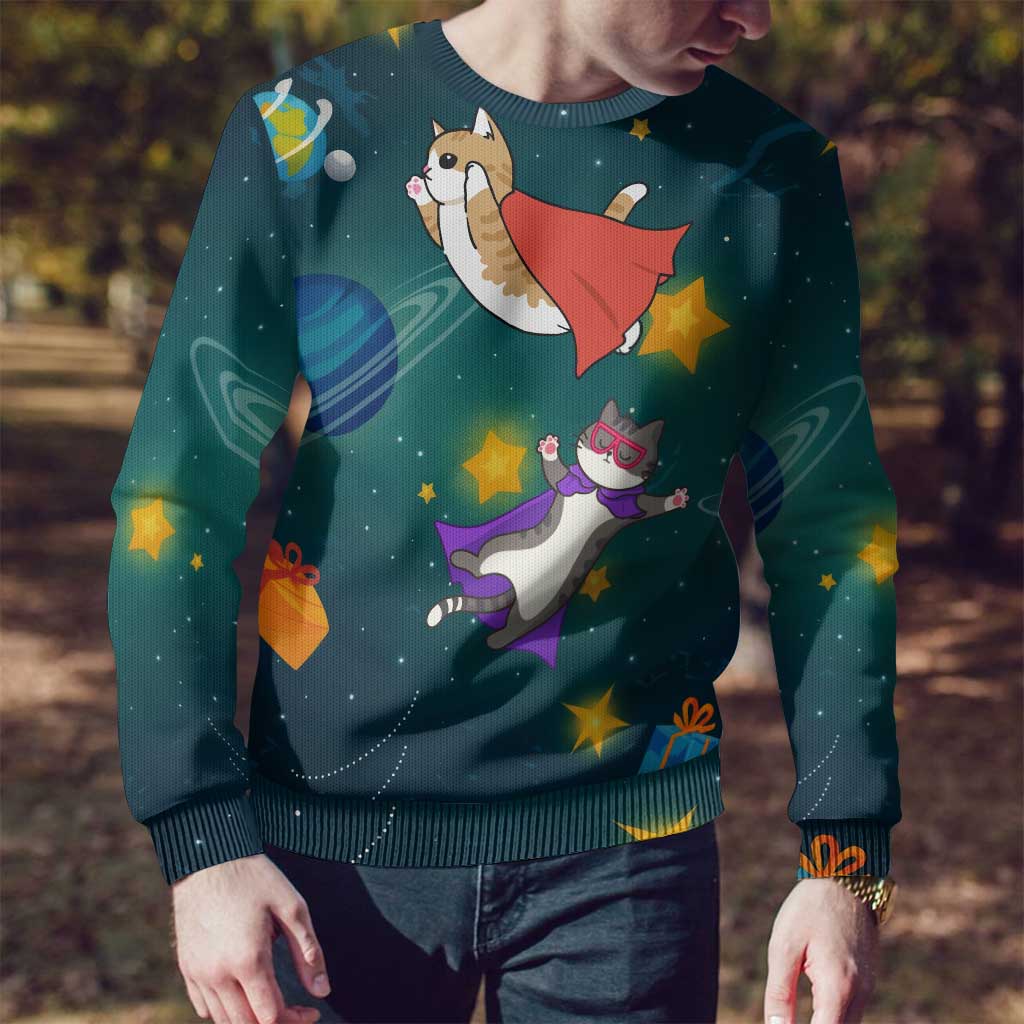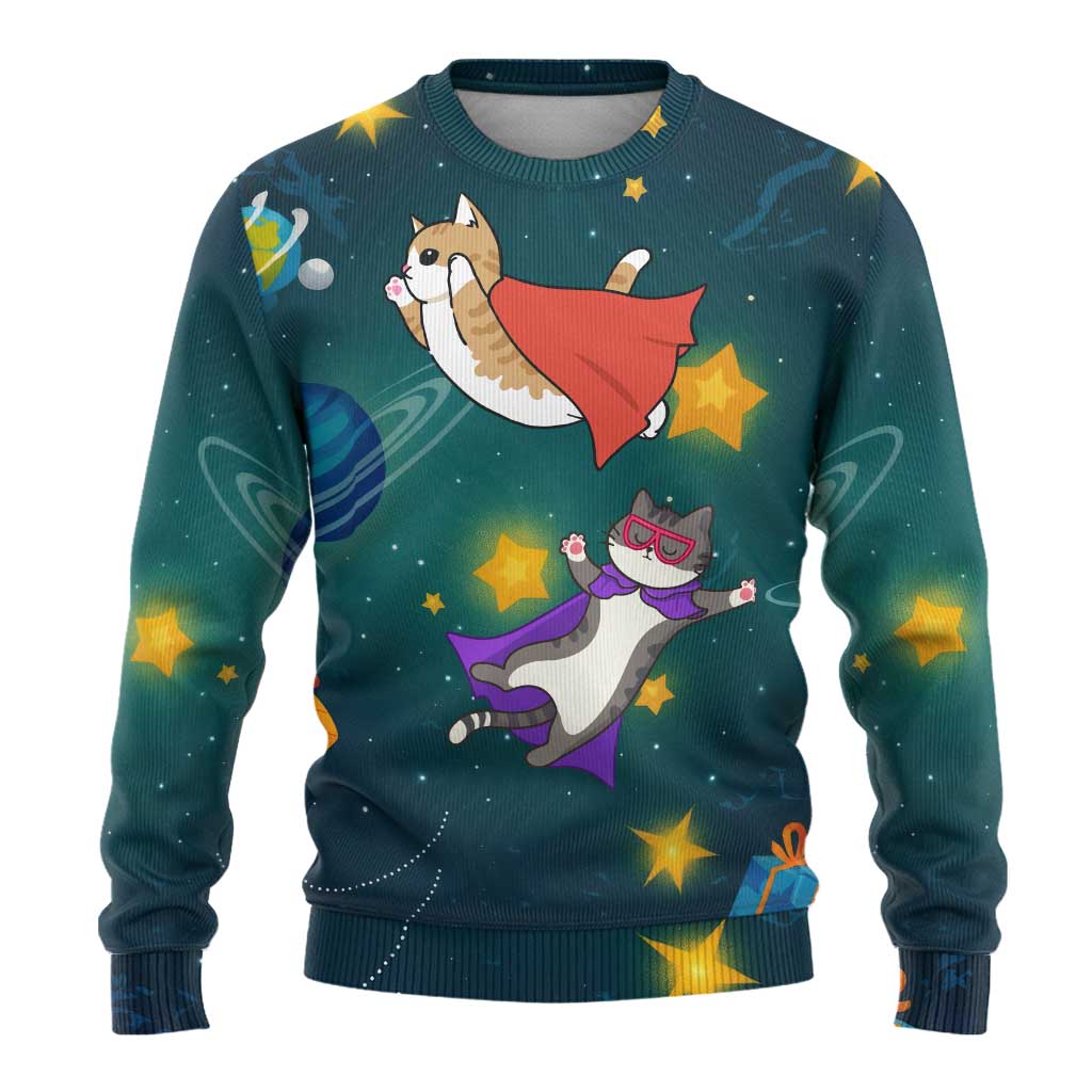 Padrões de Natal para Camisolas de Natal Feias com Tema Galáxia de Gatos